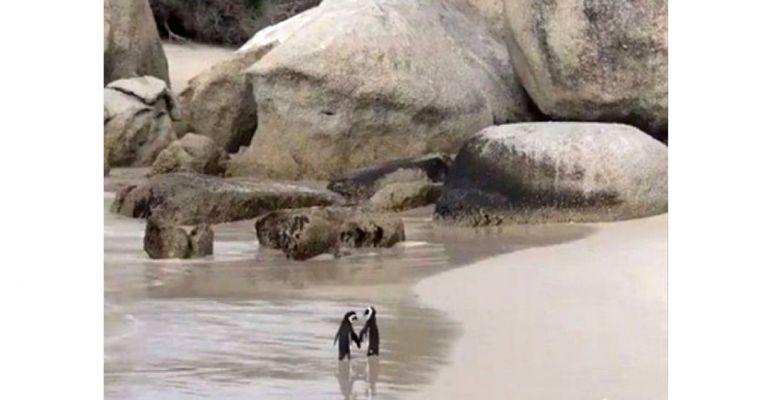 Tal fue el caso de una icónica fotografía captada en una de las playas de Sudáfrica, en donde se aprecia a una pareja de pingüinos caminar por la playa tomados de la mano, una maravillosa escena que dejó sorprendidos a los internautas debido a lo íntimo el momento.