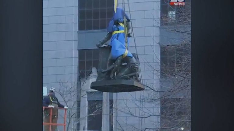 La estatua fue retirada este martes, meses después de que la Comisión de Arte de Boston votara para eliminarla antes de fin de año, según el Boston Herald, luego de que se tomara una decisión en debido a las protestas a nivel nacional que tuvieron lugar tras el asesinato de George Floyd, un hombre afroamericano, que perdió su vida a manos de un policía estadounidense.