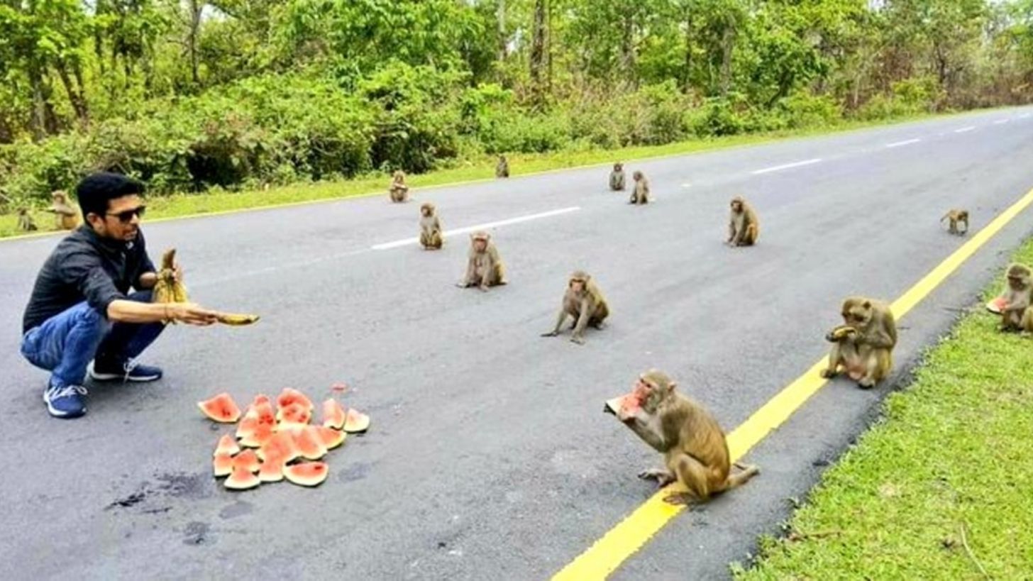 India- Kiren Rijiju, un oficial del Gobierno de India compartió una foto donde están una docena de monos esperando a que les den frutas, pero llamada la atención que no se acercan a la persona que los alimentará y están guardando su sana distancia de un metro y medio.