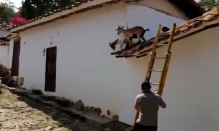 Santander, Colombia.- Las cabras son animales bastante comunes en ciertas provincias de Colombia, por lo que verlas caminando no resulta nada extraño, el problema es cuando ellas deciden subir al techo de las casas, así es, leíste bien.