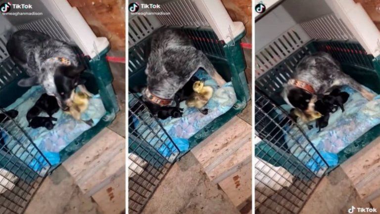 El video se viralizó a través de la plataforma de TikTok y en él se ve cómo la nueva mamá se opone a que un pato se aleje, pues lo considera parte de su camada.